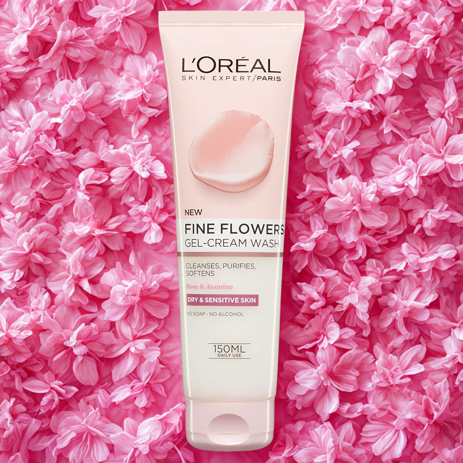 کرم ژل شستشوی صورت لورآل Fine Flowers حاوی گل رز مناسب خشک و حساس