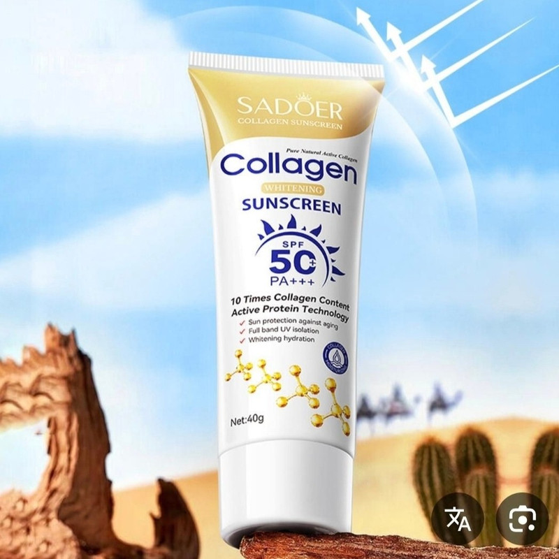 کرم ضدآفتاب بی رنگ سادور SPF 50 مدل کلاژن محافظ UVA ،UVB و PA+++، ضد حساسیت، ضد چروک و ضد پیری، مناسب انواع پوست حجم 40 میلیلیتر