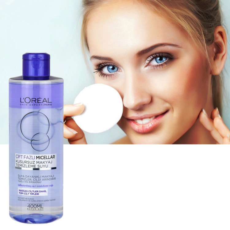 میسلار واتر دوفاز لورآل مدل bi phase محلولی با غلظت مناسب جهت رفع آلودگی ها از سطح پوست است. این پاک کننده صورت، تمام مواد اضافی روی پوست حتی غلیظ ترین آرایش ها و مواد آرایشی ضد آب را به سرعت و سهولت از سطح پوست پاک می کند. میسلار واتر دوفاز لورآل برای پاک کردن آرایش صورت، چشم و لب ها قابل استفاده است و نیازی به شستشو ندارد. این محصول فاقد الکل است و برای انواع پوست ها حتی پوست های حساس مناسب است. جهت مشاهده کلیه محصولات لورآل LOREAL و انواع پاک کننده صورت در آسوکالا و ثبت سفارش کلیک کنید!